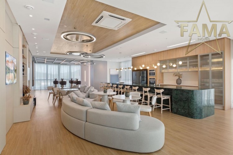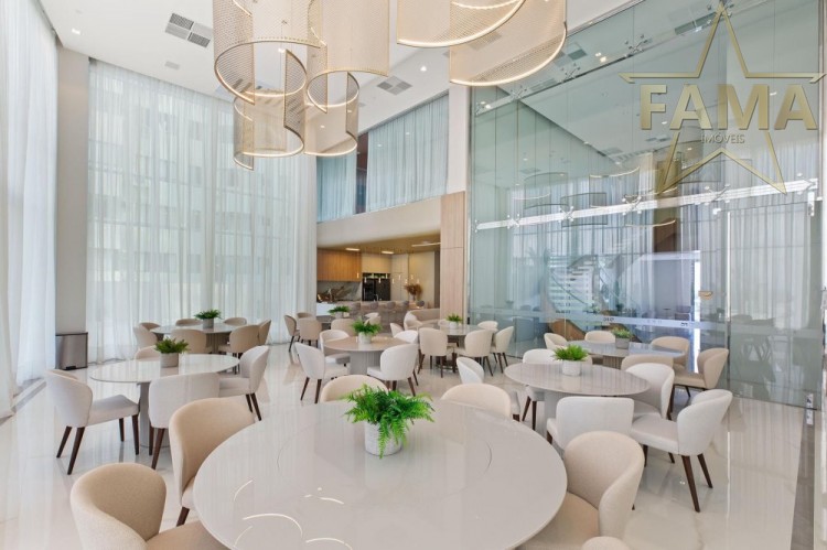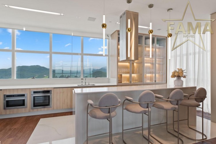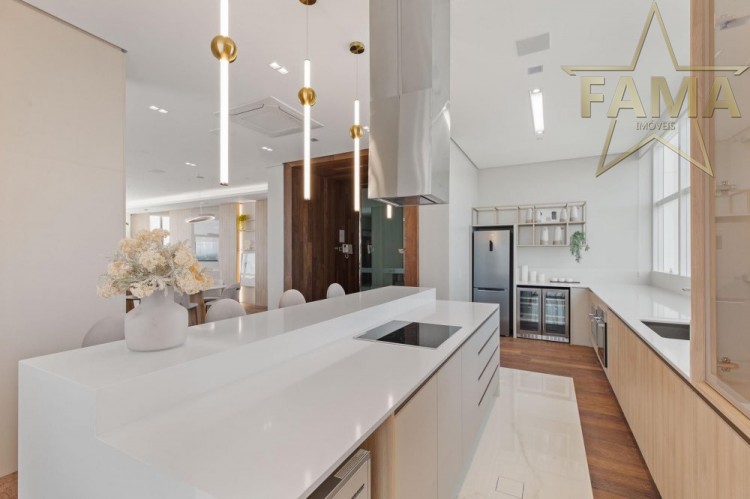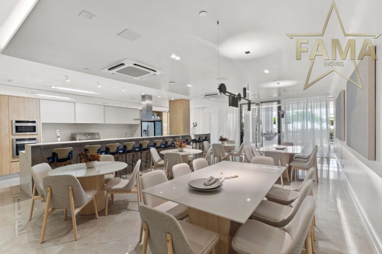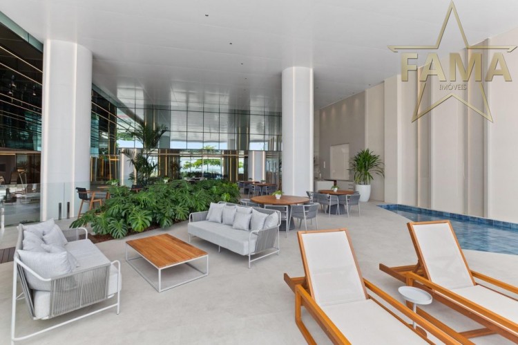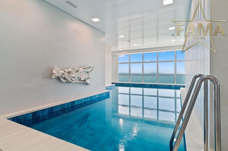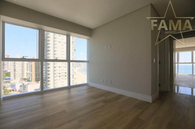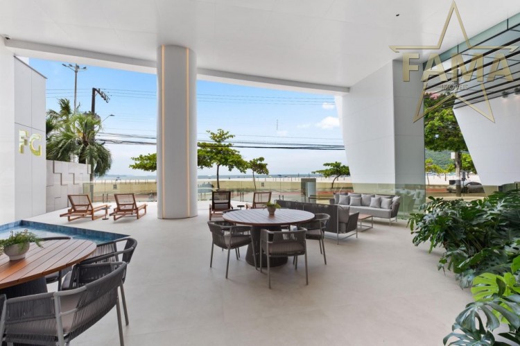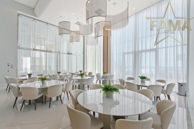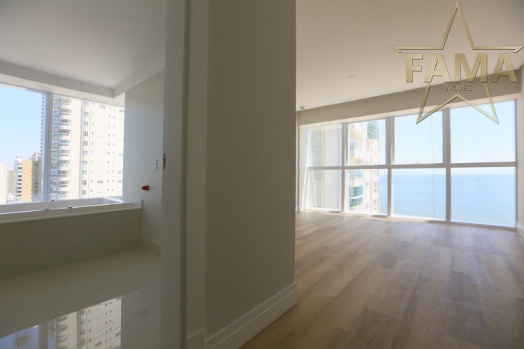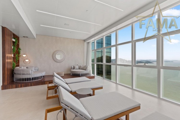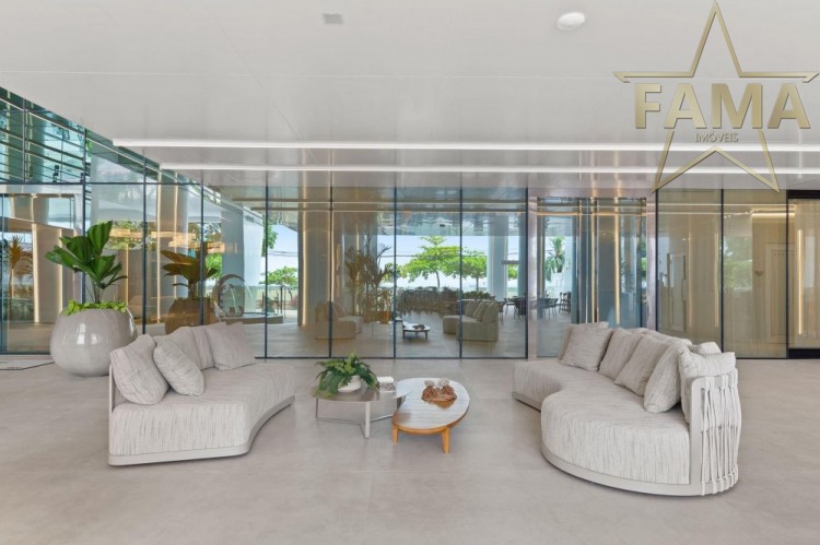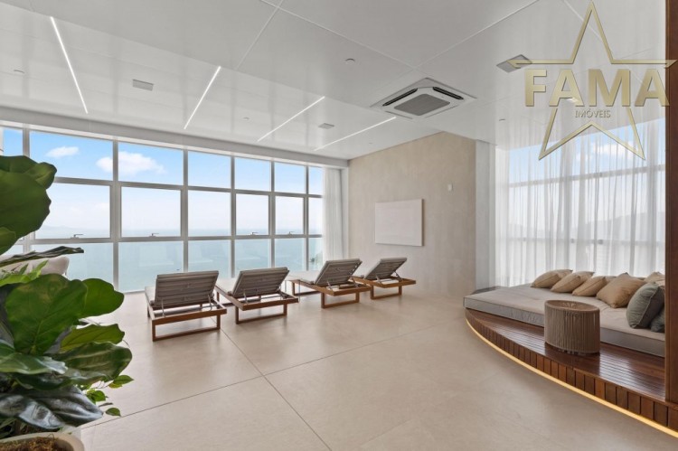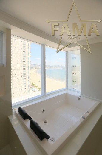 Apartamento frente mar com 195m² de área privativa, com 4 suítes, sendo uma delas máster com hidromassagem, cozinha, living, lavabo e dependência com lavabo.